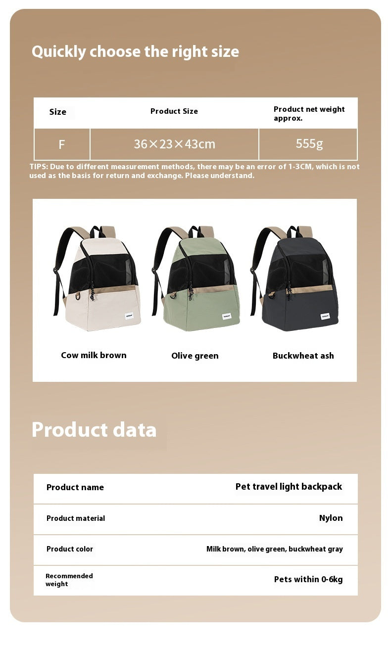 Specification: lightweight pet backpack suitable for pets within 6KG